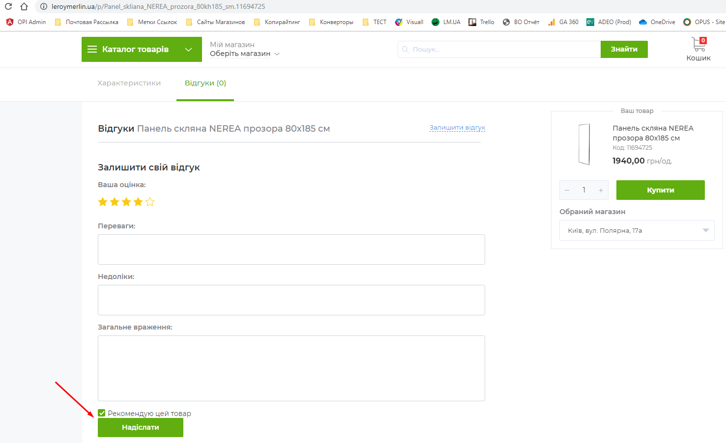 Checkbox "Рекомендую цей товар" is to close to button "Надіслати".