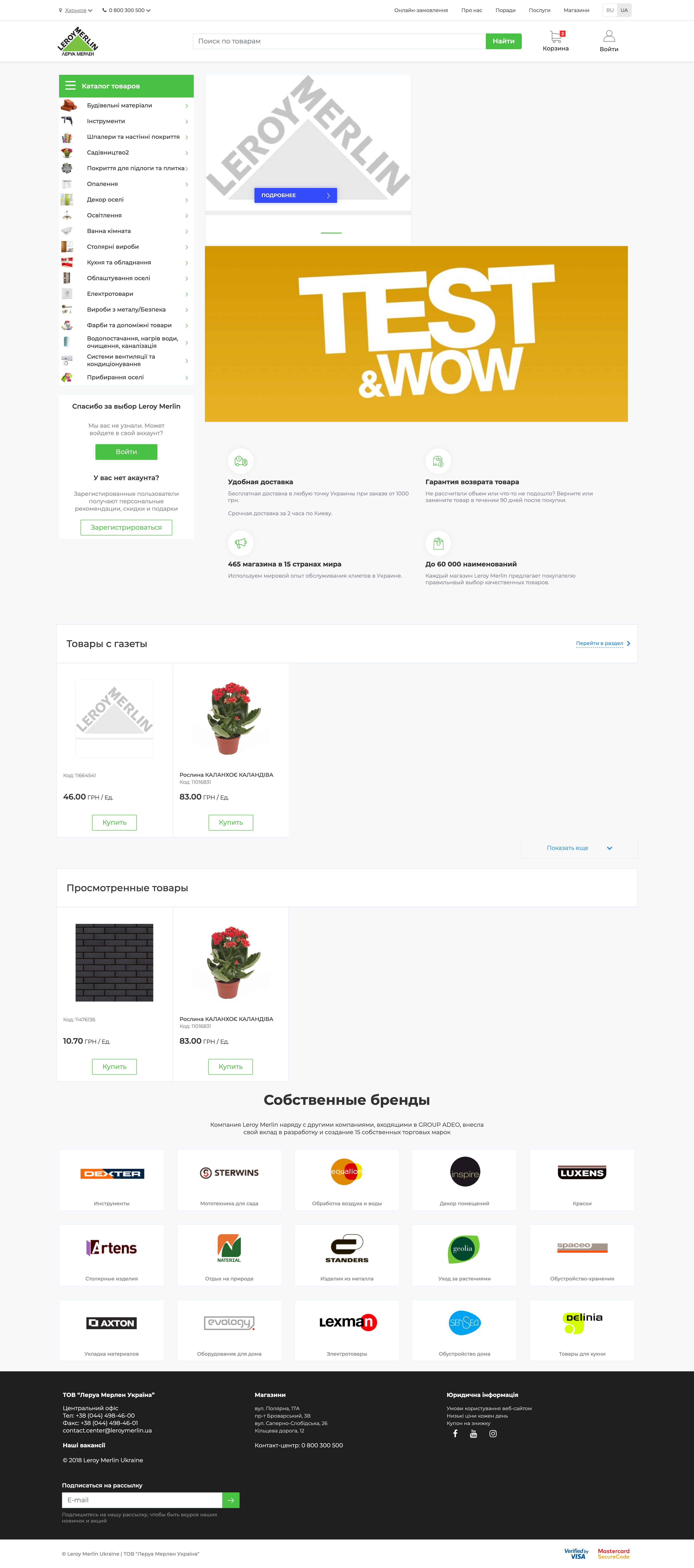 We need to completely redesign the home page of leroymerlin.ua with respect of mockups provided by WebPromo team - https://7fvwi9.axshare.com/#g=1&p=main_page